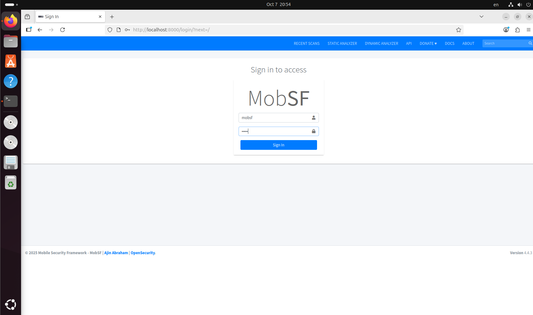 یوزرنیم پسورد پیشفرضش هم mobsf هست! ( که بالاتر هم گفته بودم... )